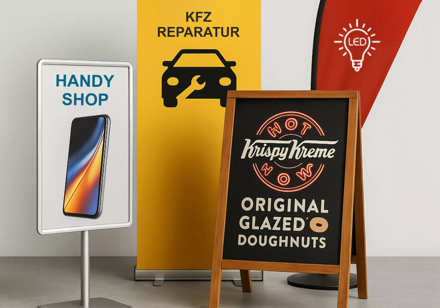Professionelle Werbedisplays und stabile Aufsteller – ideal für Messen, Verkaufsflächen und Events. Präsentieren Sie Ihre Marke sichtbar und wirkungsvoll.