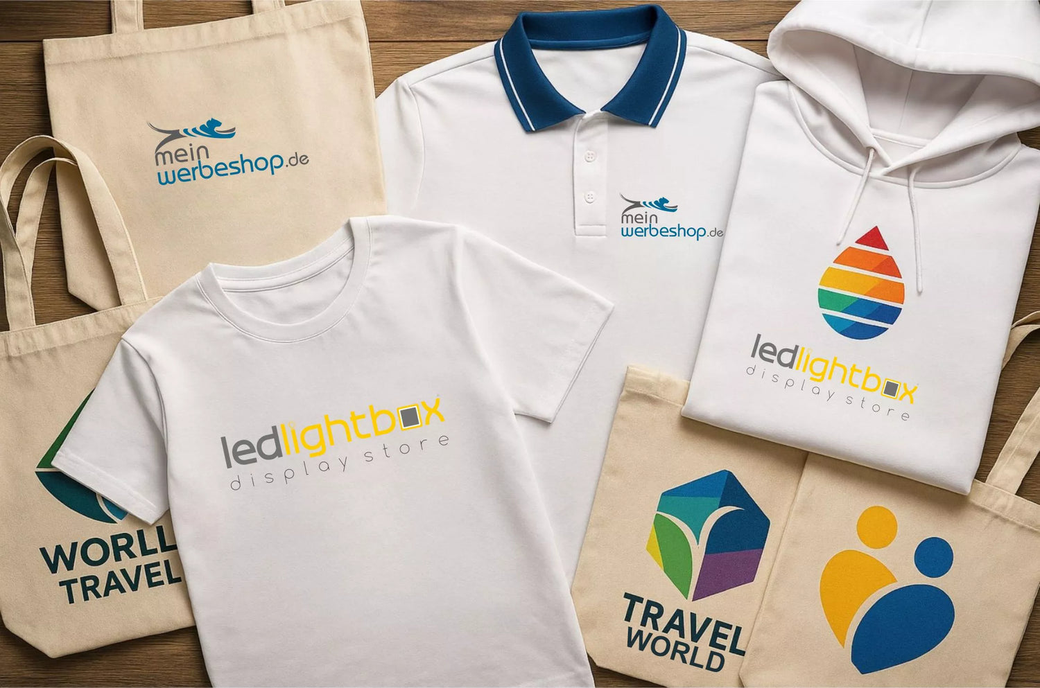Hochwertiger Druck auf T-Shirts, Hoodies & Taschen – ideal für Teams, Werbezwecke oder individuelle Geschenke.